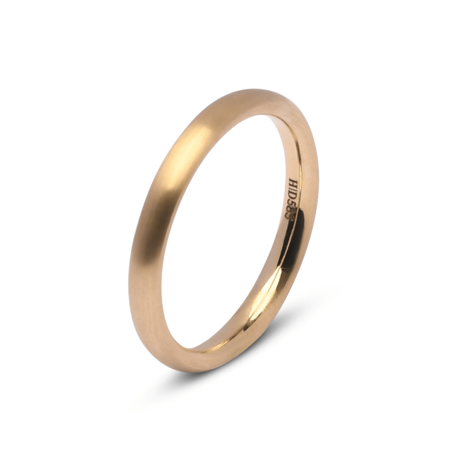 Deze stijlvolle trouwringen zijn vervaardigd uit 14 karaats geelgoud en hebben een tijdloze satijnmatte afwerking. Beide ringen hebben een comfortabel ovaal profiel, wat zorgt voor een prettige pasvorm.