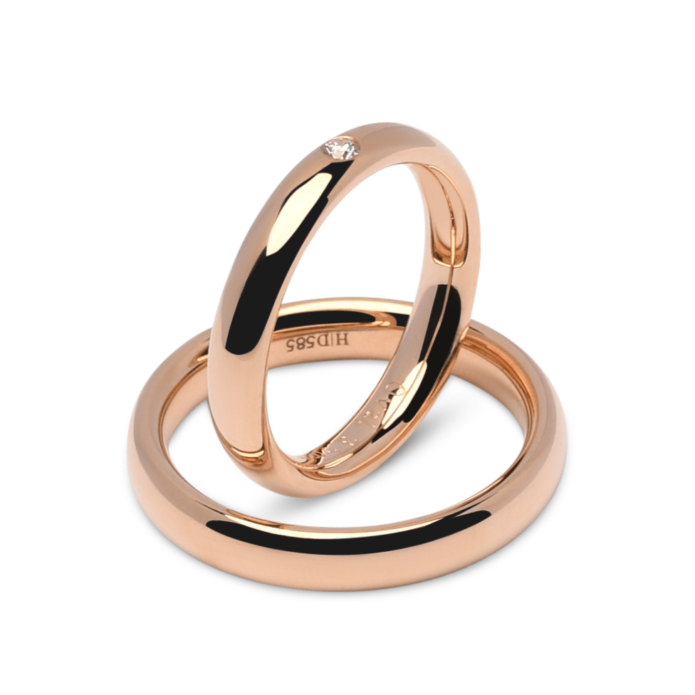 Trouwringen 14 karaats Roségoud met briljant