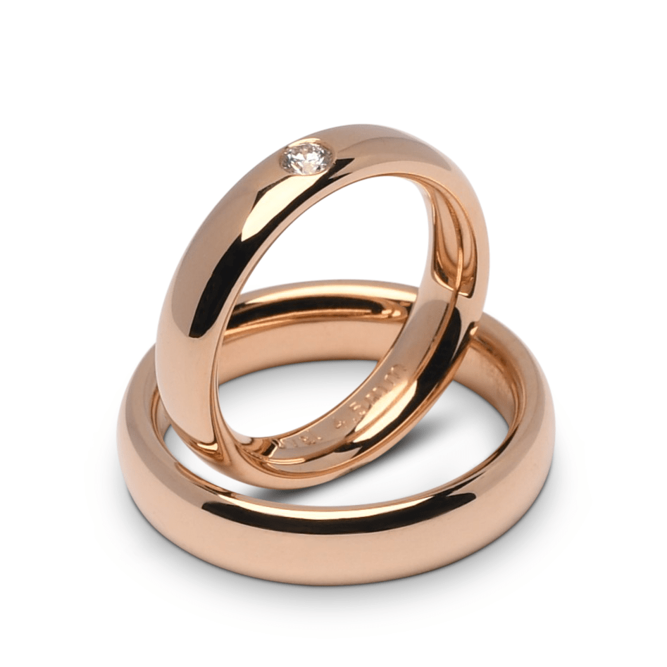 Trouwringen 14 karaats Roségoud met briljant van 0,10 ct