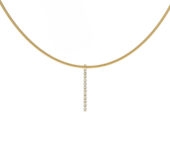 De briljanten op de Niessing Linear Briljant hanger zorgen voor fonkelende accenten. Ze lijken te zweven op de fijne en gebogen voorkant van de verfijnde hanger…