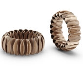 Vele, ovale, identieke plaatjes, daartussen speling die de ring beweeglijk houdt: licht en luchtig, zacht en soepel. Een schouwspel voor je hand.