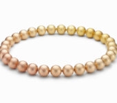 Van een bovennatuurlijke schoonheid. Gouden kogeltjes met een verfijnd kleurverloop van een intensief rood naar een luisterrijk grijs. Het collier heeft de glans van parels en pas op de huid komt het volledig tot zijn recht.
