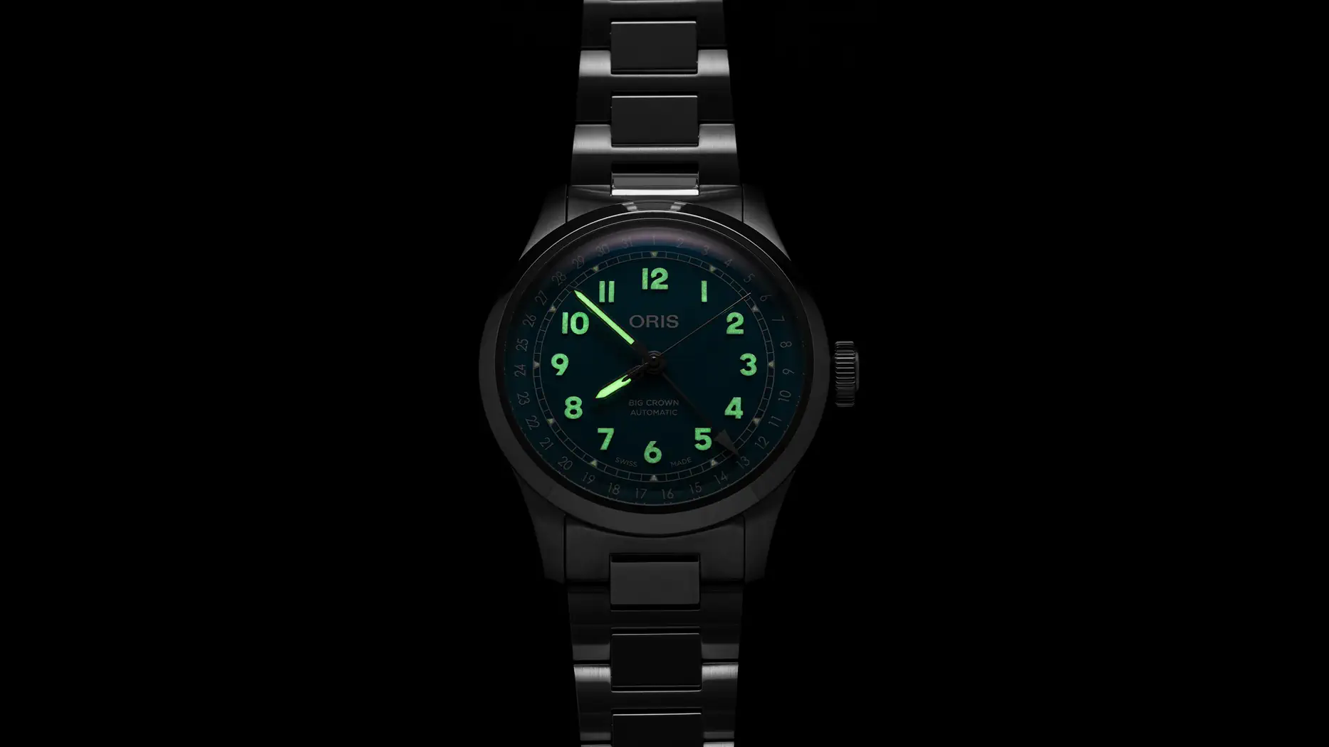 Voor het eerst geïntroduceerd in 1938 en ontworpen voor de luchtvaart, door de oversized kroon kunnen piloten eenvoudig de kroon bedienen met handschoenen aan. De wijzerplaat heeft een duidelijk en goed leesbaar ontwerp, met markeringen die de uren en minuten aangeven dit maakt de Big Crown Pointer Date een kenmerkend model uit de Oris-lijn. De Big Crown Pointer Date staat naast zijn oversized kroon ook bekend om de datumaanduidings wijzer. Beide kenmerken zijn al acht decennia een constant element sinds het ontwerp werd geïntroduceerd, een periode die wordt gevierd met elke nieuwe editie.