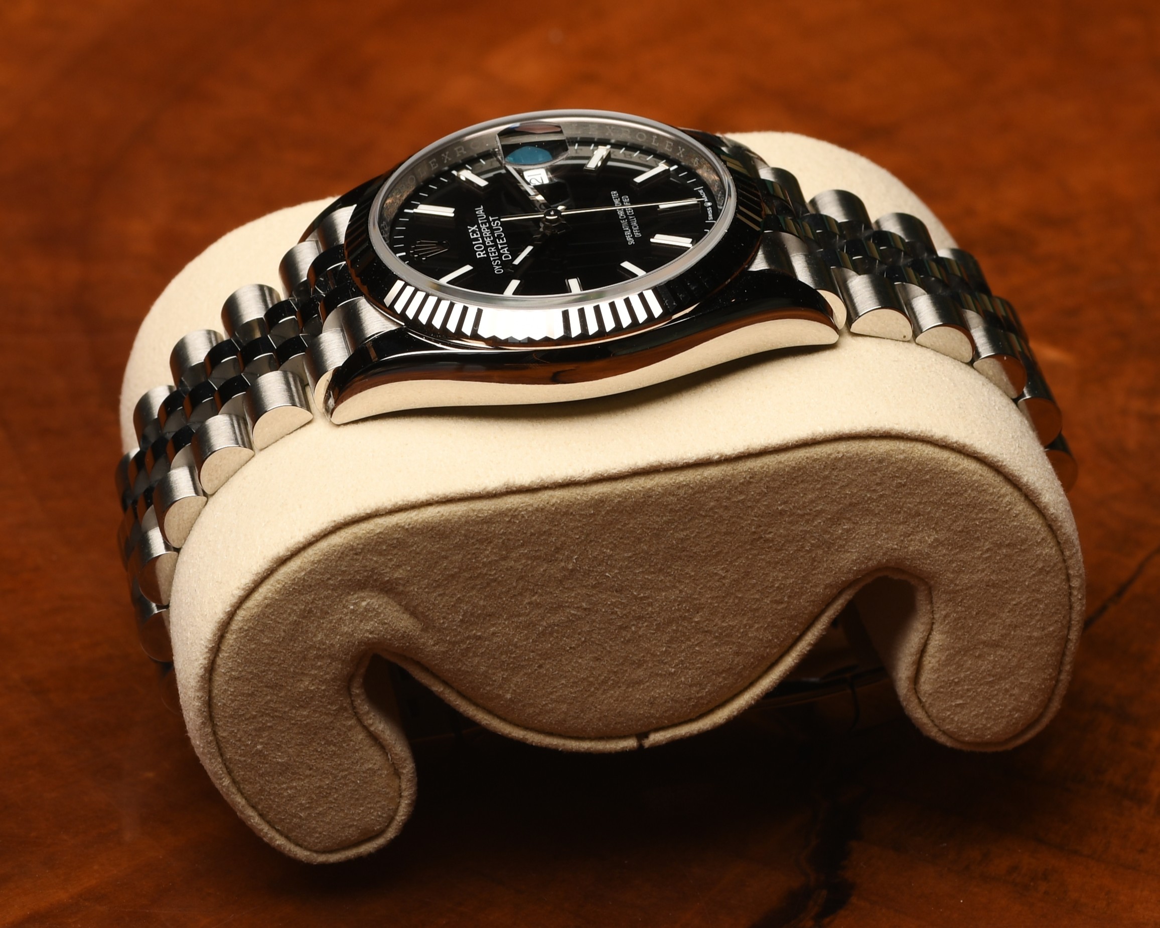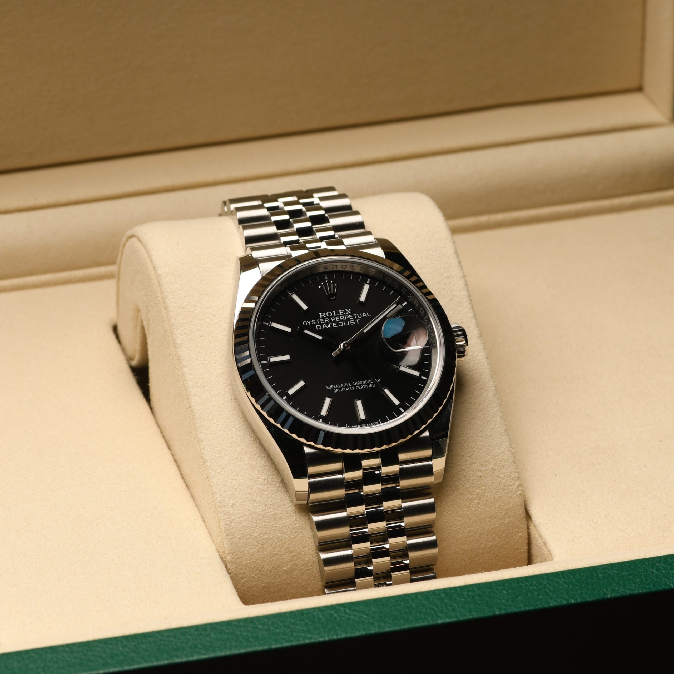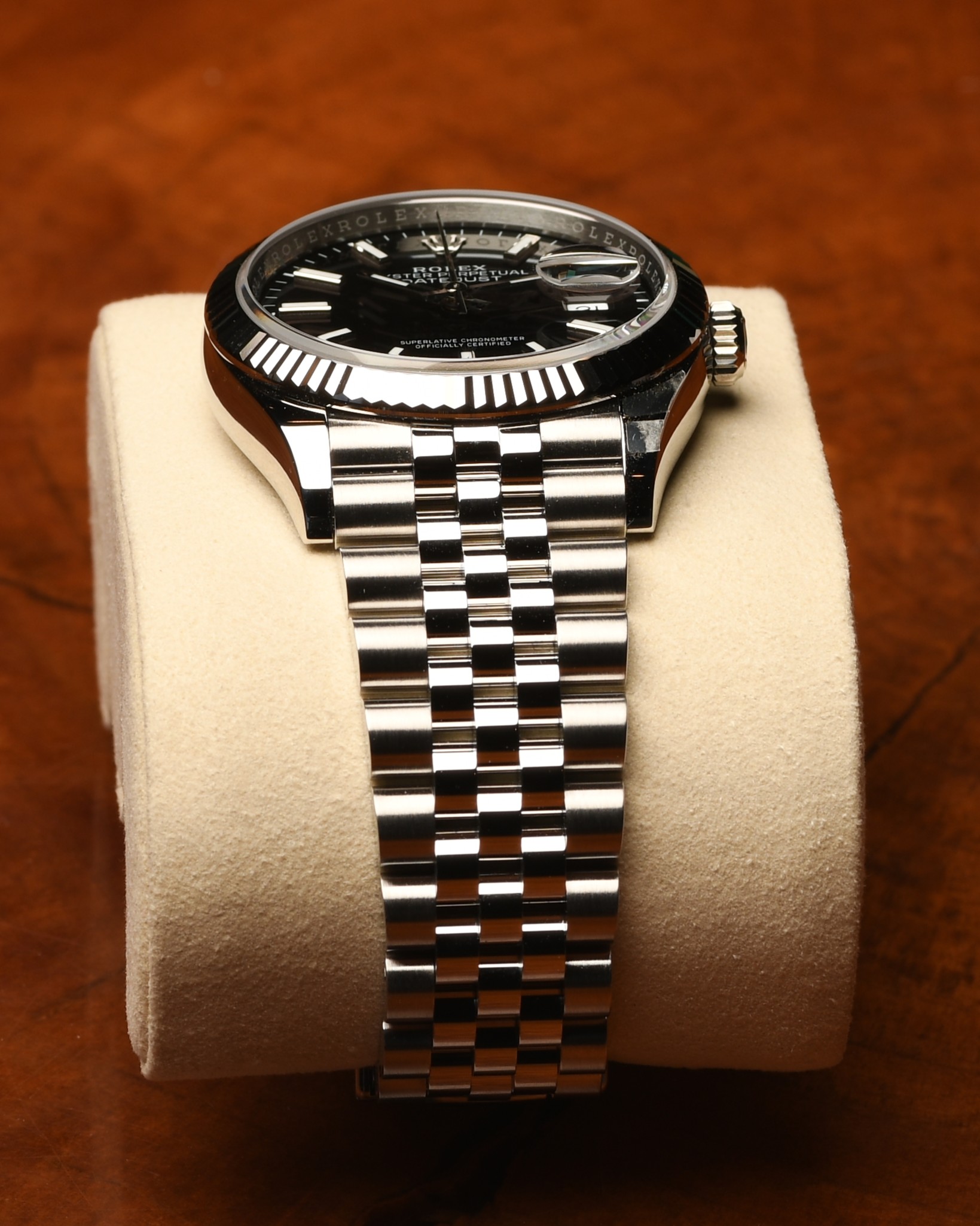 Met zijn 36 mm kast, wittegouden fluted bezel en iconische Jubilee-band is dit model perfect als dagelijks horloge én als verfijnde eyecatcher om de pols.