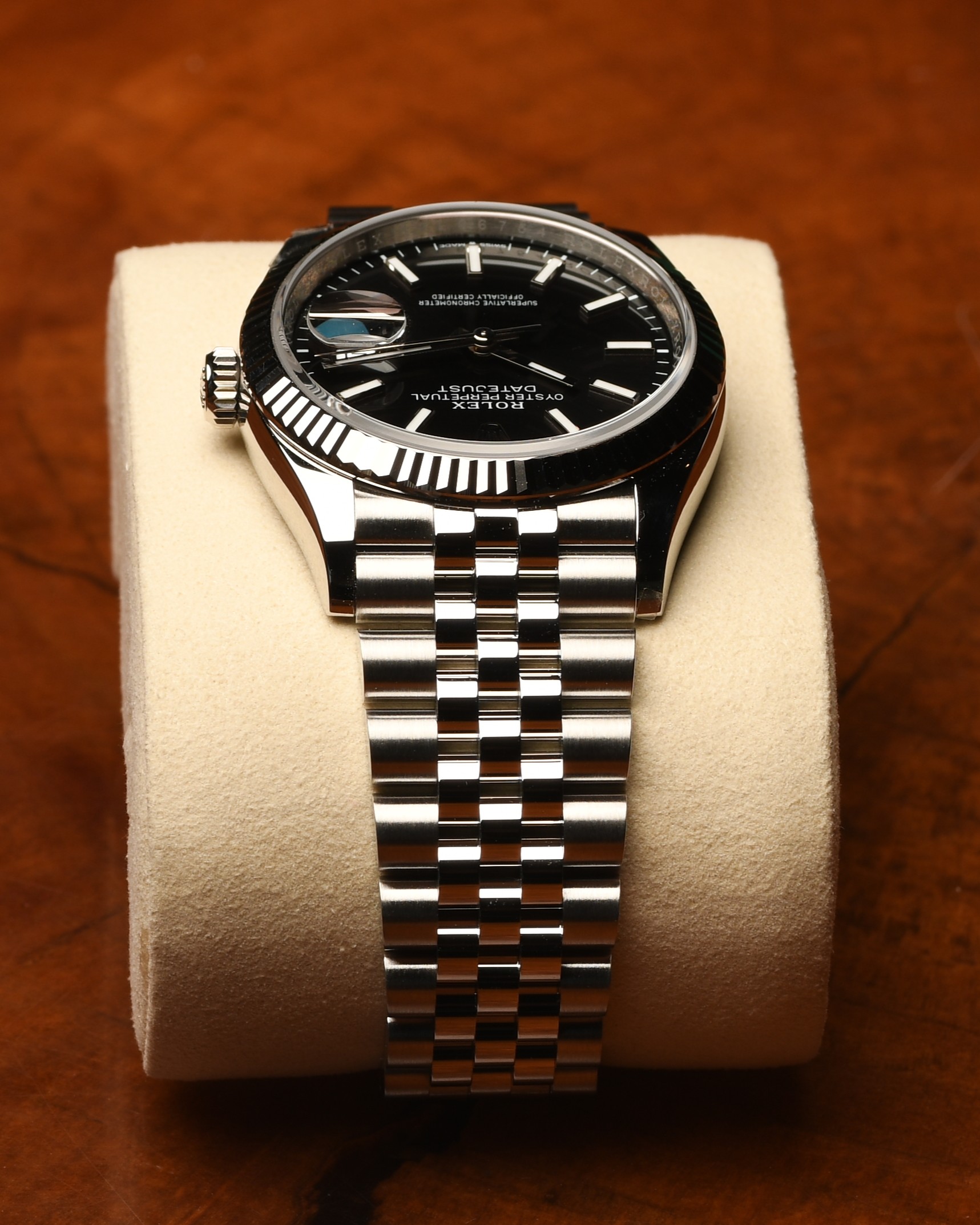 De combinatie van de zwarte wijzerplaat met de glanzende fluted bezel geeft dit model een klassieke en tegelijk moderne uitstraling. De slanke kast van 36 mm zorgt voor uitstekende draagbaarheid, zowel casual als formeel.