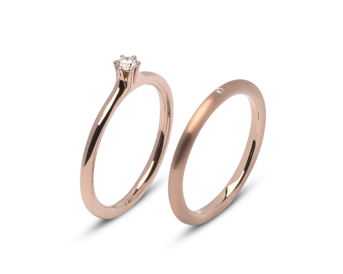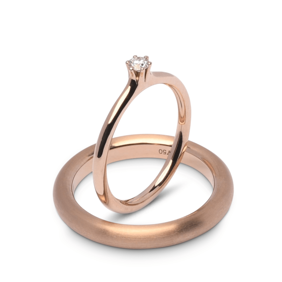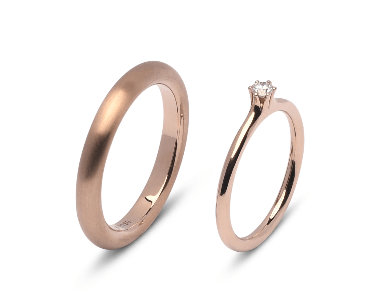 Trouwringenset in 18 karaats Rosewood goud met Circle-profiel en briljant