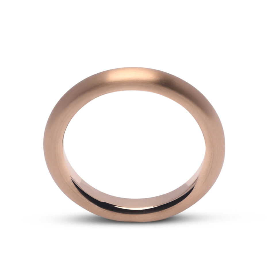 De bijpassende herenring is 3,5 mm breed en heeft een strak en tijdloos ontwerp. Met dezelfde hoogwaardige afwerking en warme uitstraling van het Rosewood goud. Afwerking satijn-mat